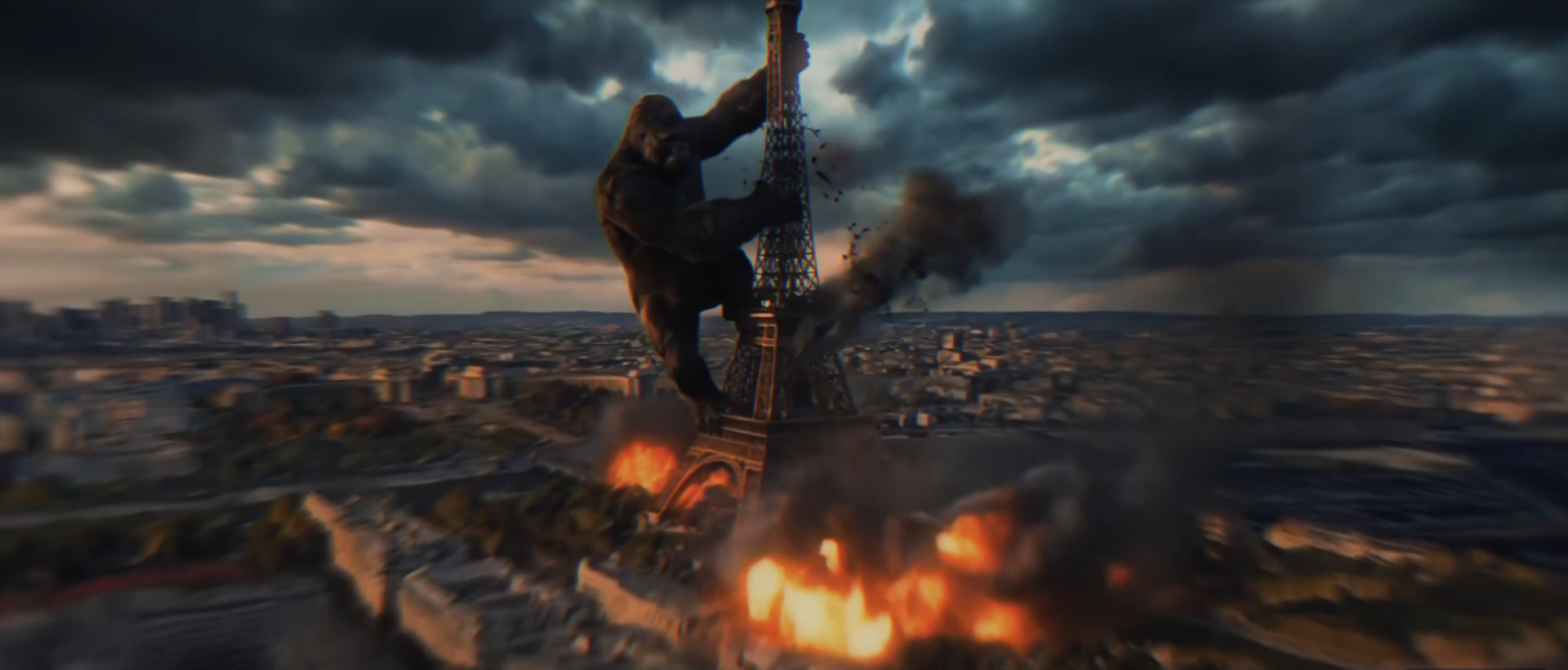Use NanoBanana Pro and Kling O1 video model to add King Kong as a dynamic character climbing the Eiffel Tower.