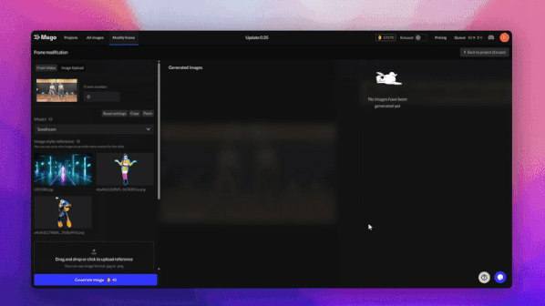 Start from your own image! Upload it directly after editing your frame and refine it inside Mago’s image-to-image workflow.